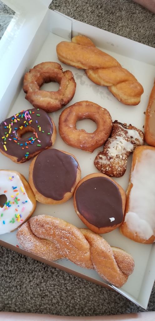 Wixey’s donuts for my birthday at work, grilled cheese from Manhattan’s, Kroger donuts for out last day in our Holland apartment, Joe’s KC BBQ and ice cream at Silas and Maddy’s in Olathe, Kansas
